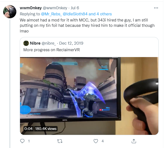 What is perhaps more interesting is the revelation further down the replies that says an engineer from a fan made mod for the MCC was hired by 343. It looks like they were a decent way in to this mod before the engineer, known as Nibre_ was hired away by 343. He goes on to state that one of the reasons for the cancellations on development was a lack of VR market but with the “success” of the meta quest2 and Sony on their second iteration of playstation VR perhaps the market has developed to a point where entering the VR space makes more sense.