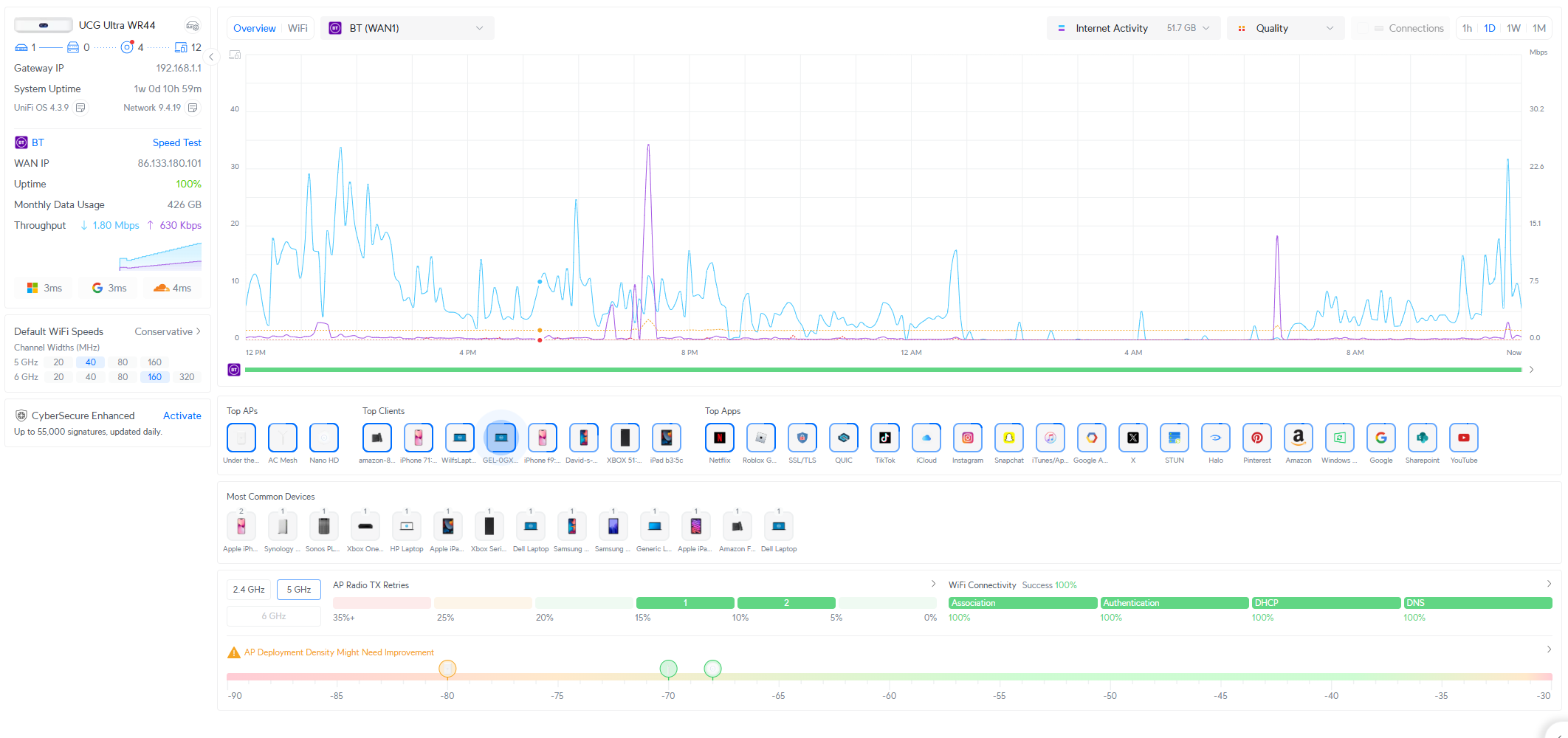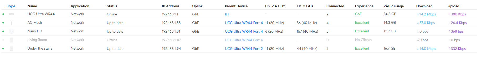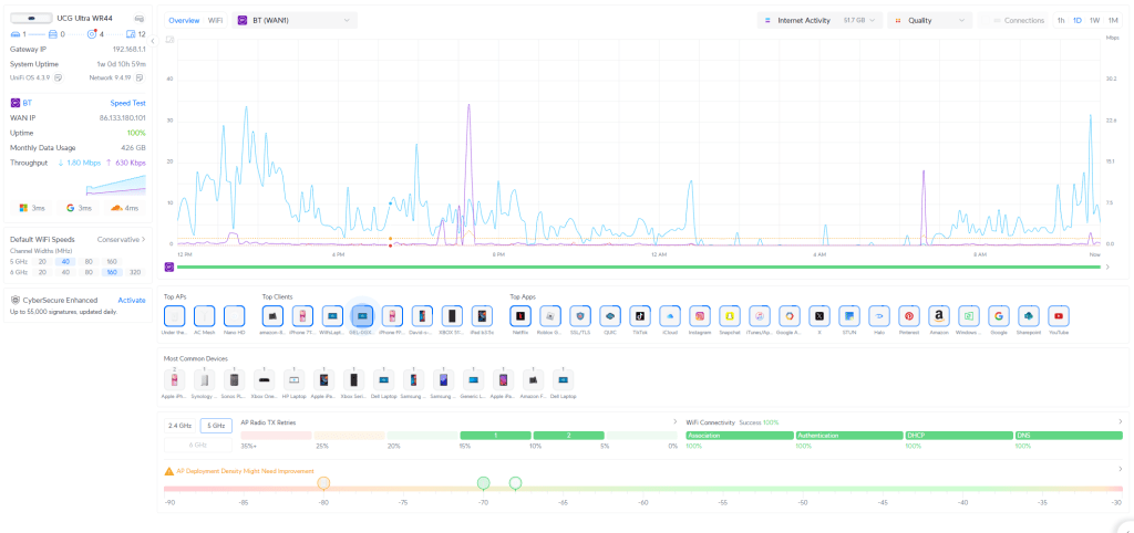 The UniFi dashboard is excellent. It shows you: