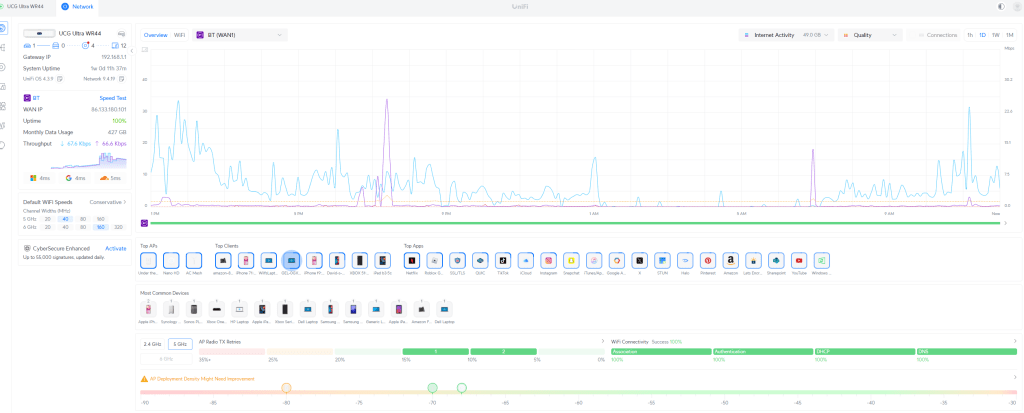 I also like the idea of investing in an ecosystem. With UniFi, the gateway, switches, and APs all integrate into a single pane of glass. It is the kind of environment that has good industry support and gives me something I can use to practice and familiarise myself with outside of work.